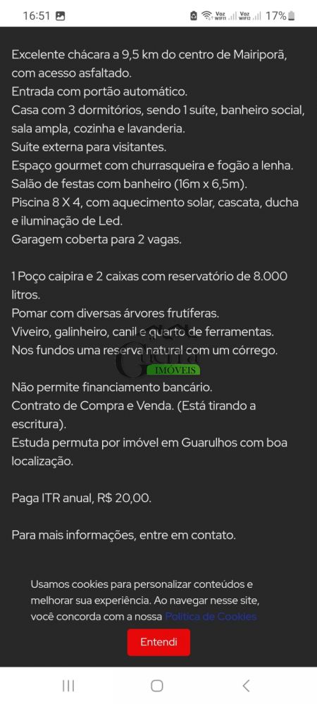 LINDA CHACARA EM MAIRIPORÃ BEM LOCALIZADA